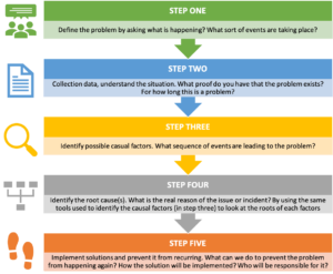 Root cause analysis is a structural and powerful methodology used to solve problems. It requires to look beyond the solution to the immediate problem and understand the fundamental causes of the situation in order to prevent the recurrence of the same incident, problem or non-conformity.